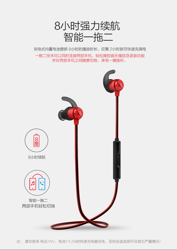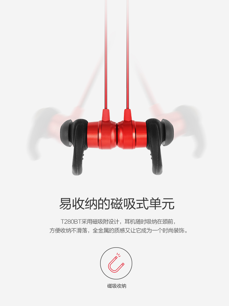 JBL T 2800 BT入耳式ブルートゥース無線ヘッドホン首掛式ランニングヘッドホンアップルAndroid携帯電話ゲームイヤホーン金属チタン振動膜磁気吸入式ヘッドフォン付き赤
