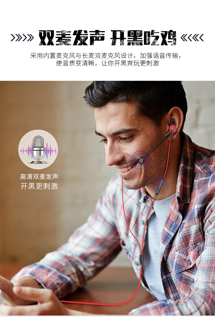 ランシュトンG 100 Xゲームのイヤホン半入耳式の専門電気競耳麦は絶対に生を求めて鶏のネット授業の教育のコンピュータの執務する高清のマイクロフォンの通用する重低音砲の赤色を食べます。