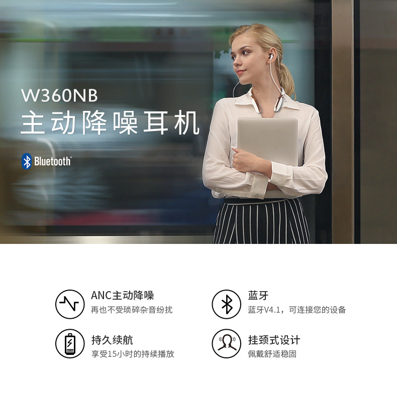 拡散者(EDIFIIER)W 360 NBアクティブノイズ低減イヤホンワイヤレス運動ブルートゥース入耳式イヤホンバンド麦可通話親肌掛首式灰色