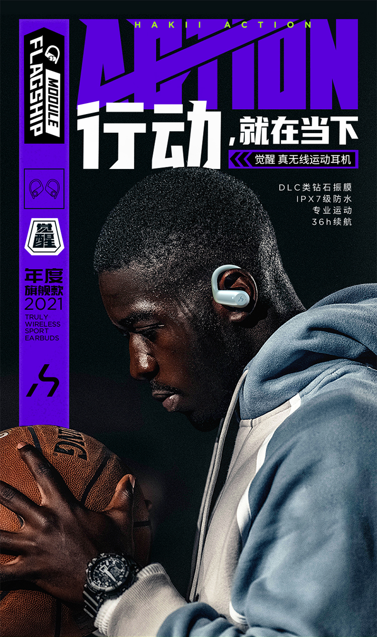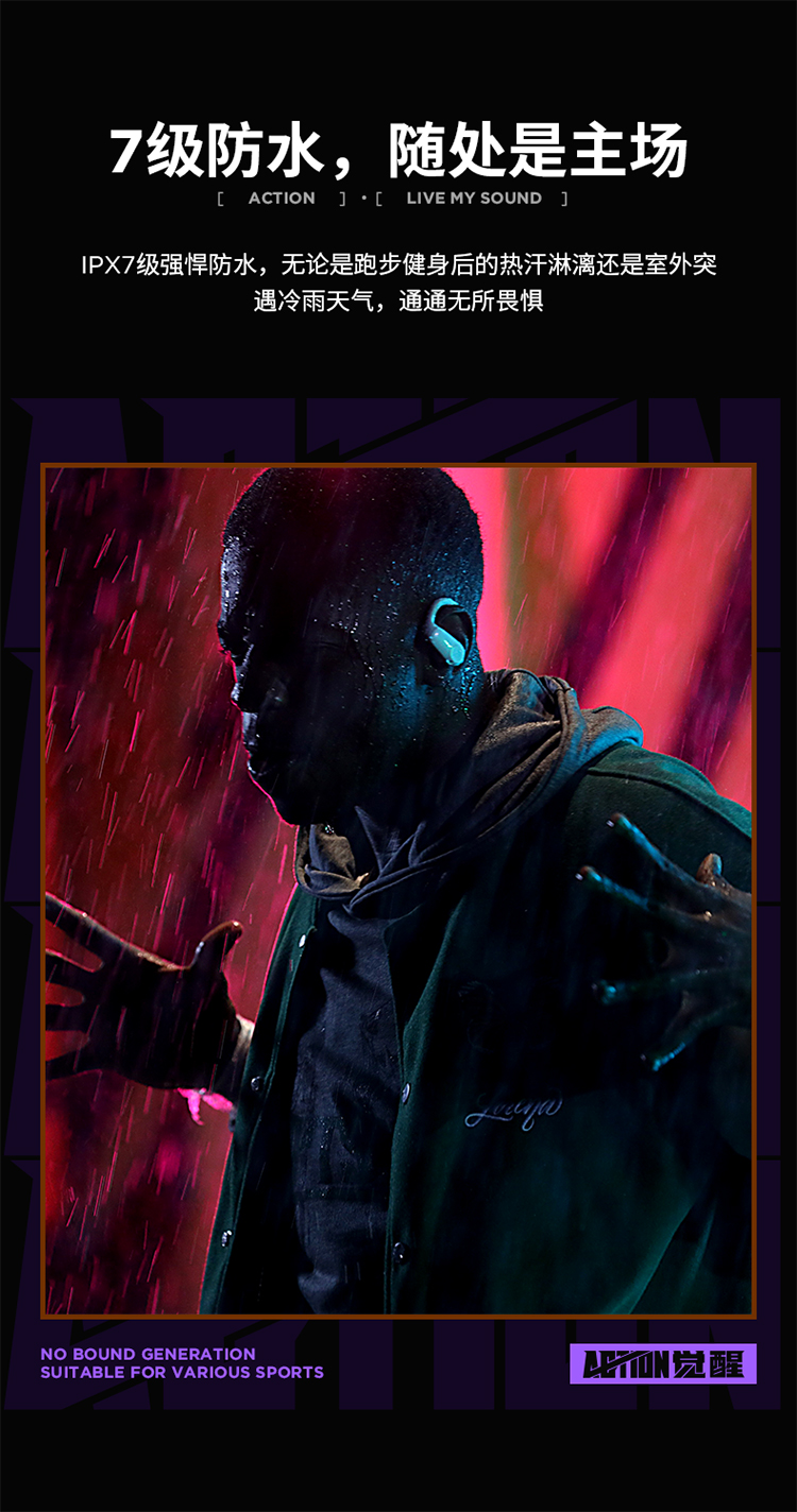 HAKII ACTION哈哈クリプトン覚醒7级防水布鲁托斯5.2真怀亚雷斯挂耳式智能手机运动兰防汗狂振不掉通话诺伊斯减少超长续航