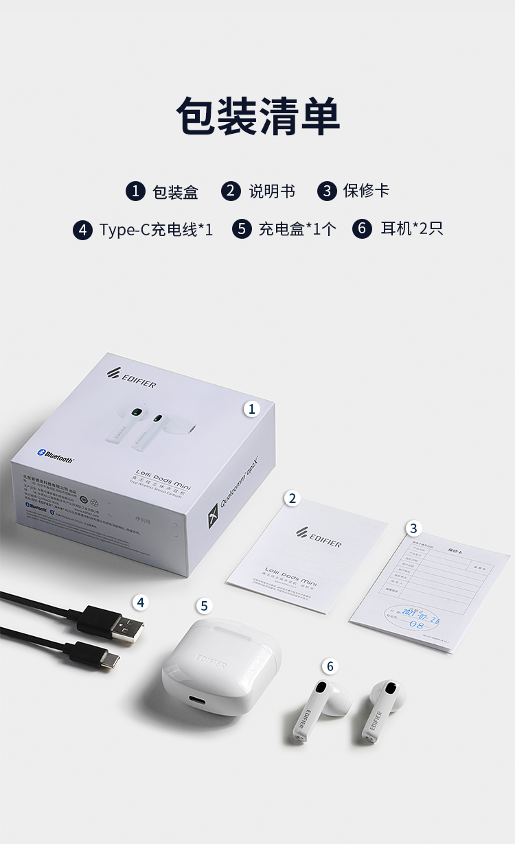 漫步者(EDIFIER)LolliPods Mini真怀亚莱斯布鲁托斯伊亚霍恩Seminiya本田优衣弗萨尔ios华为小米斯马霍白色